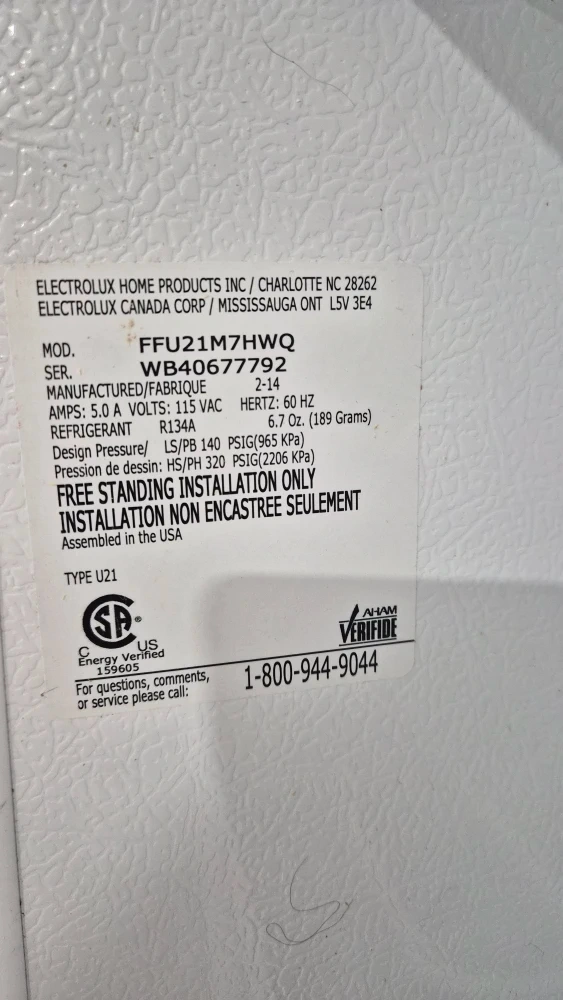 Selling an Electrolux upright freezer in very good condition, the model number is FFUI21M7HWQ. Cleaned and ready for pick up! $450 obo