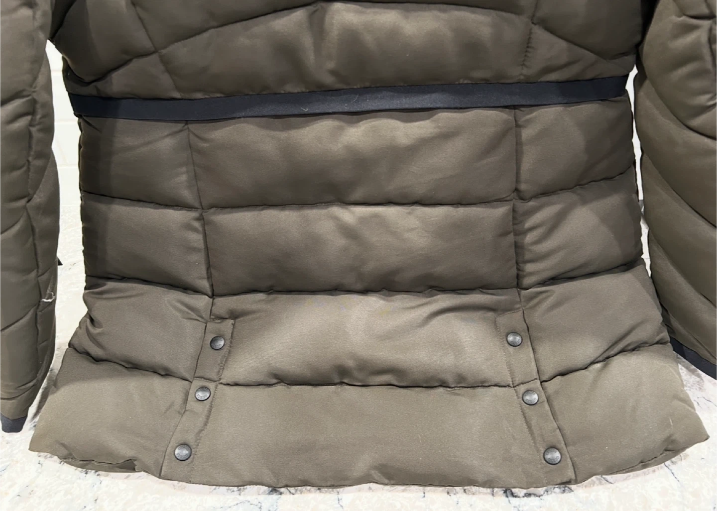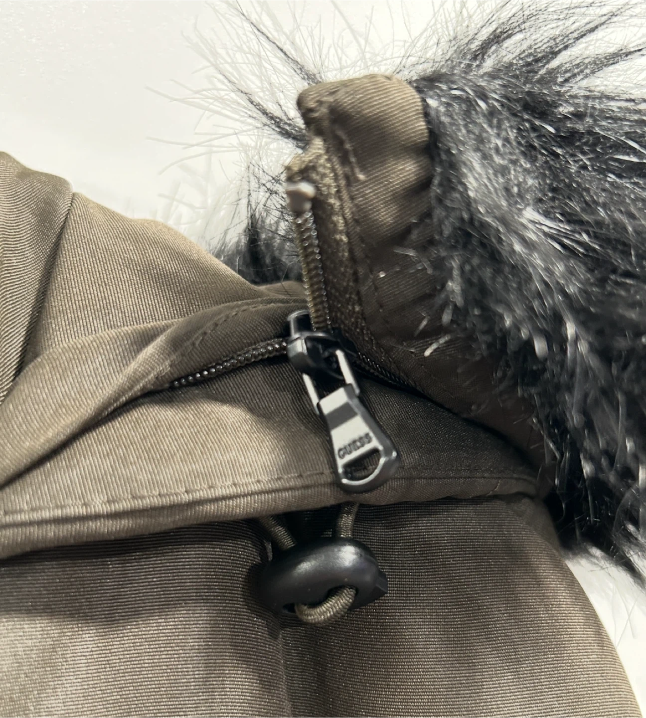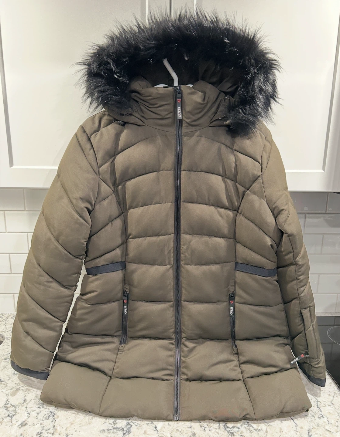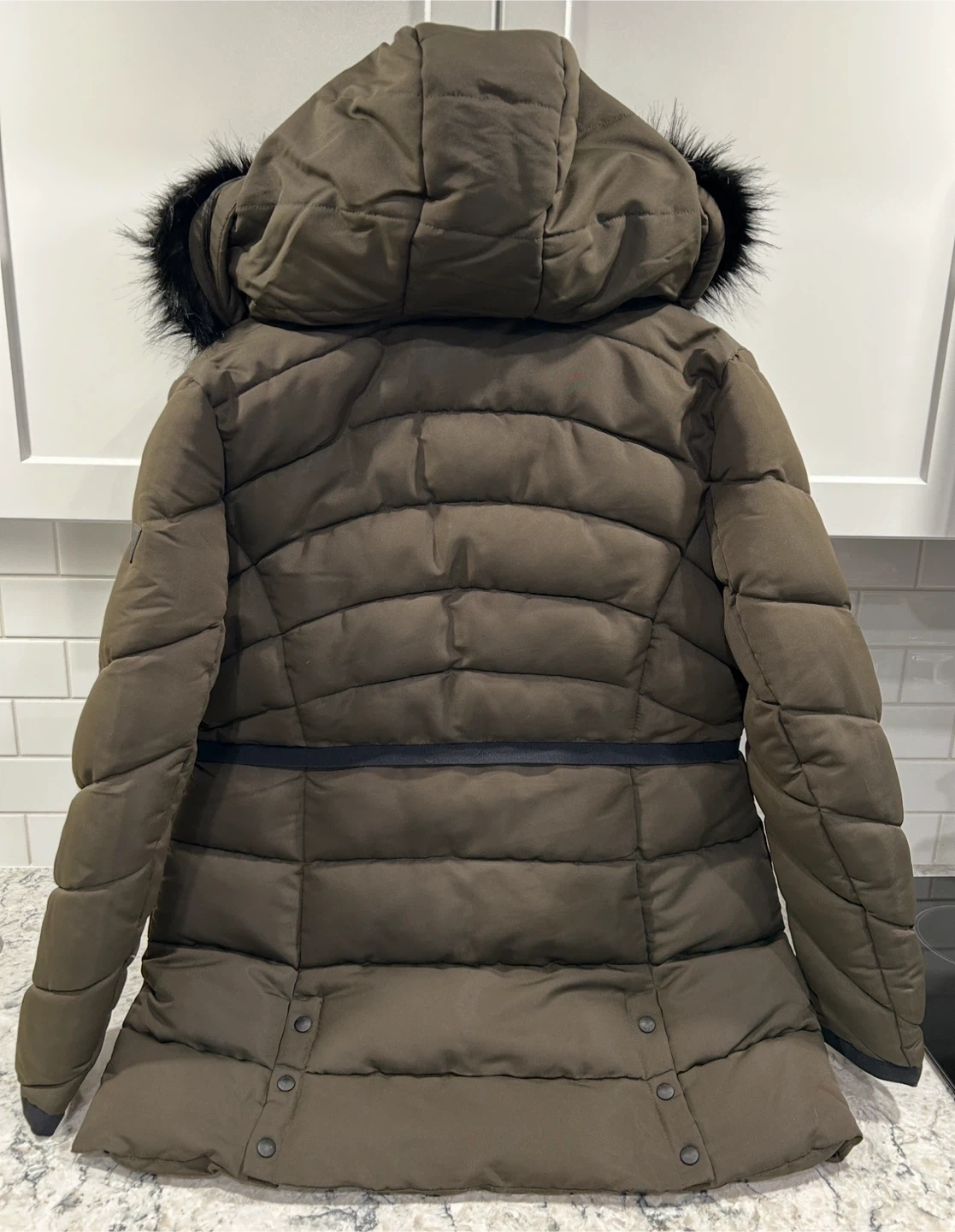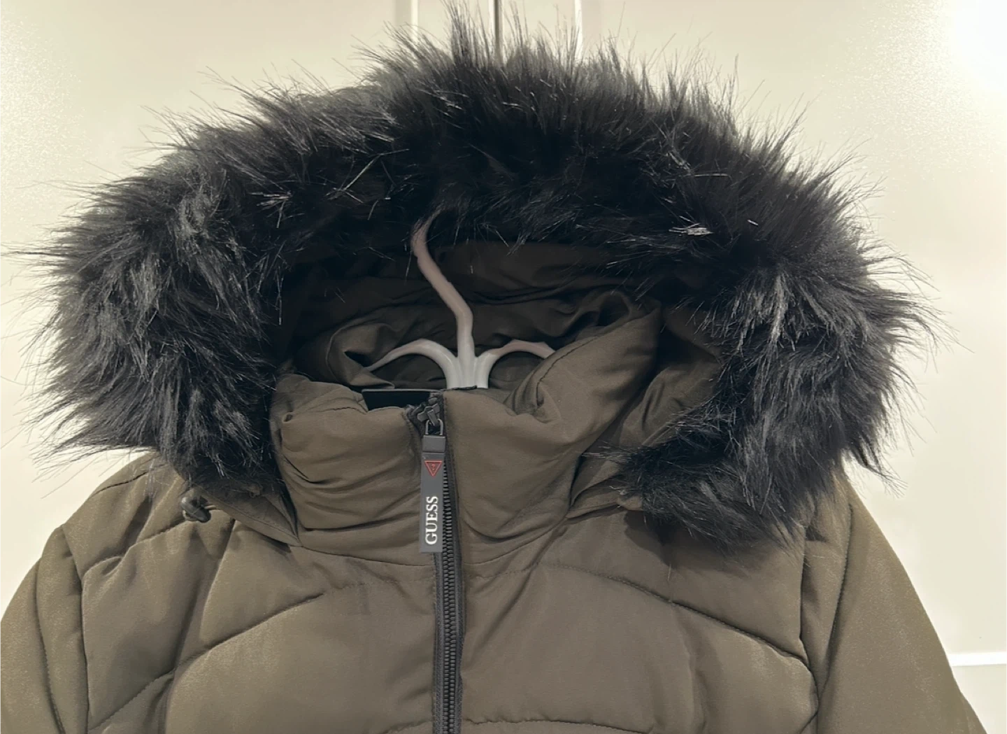 Stylish olive green puffer coat from Guess, perfect for the cold Canadian winters!