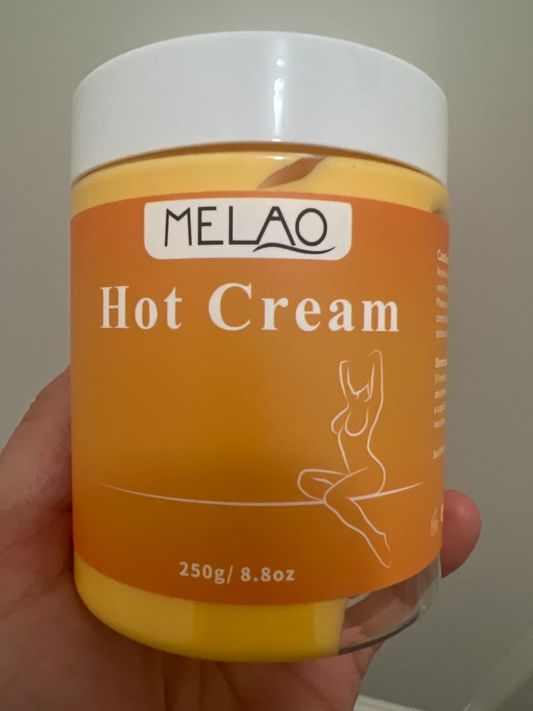 Selling a jar of MELAO Hot Cream, 250g. The expiration date is 2027 February 03. Please avoid contact with eyes and mucus membranes. Store in a cool and dry place, away from light