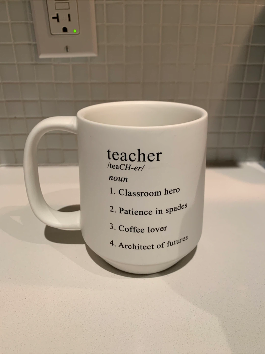 A beautiful light cream colour mug for yourself or for your favorite teacher.