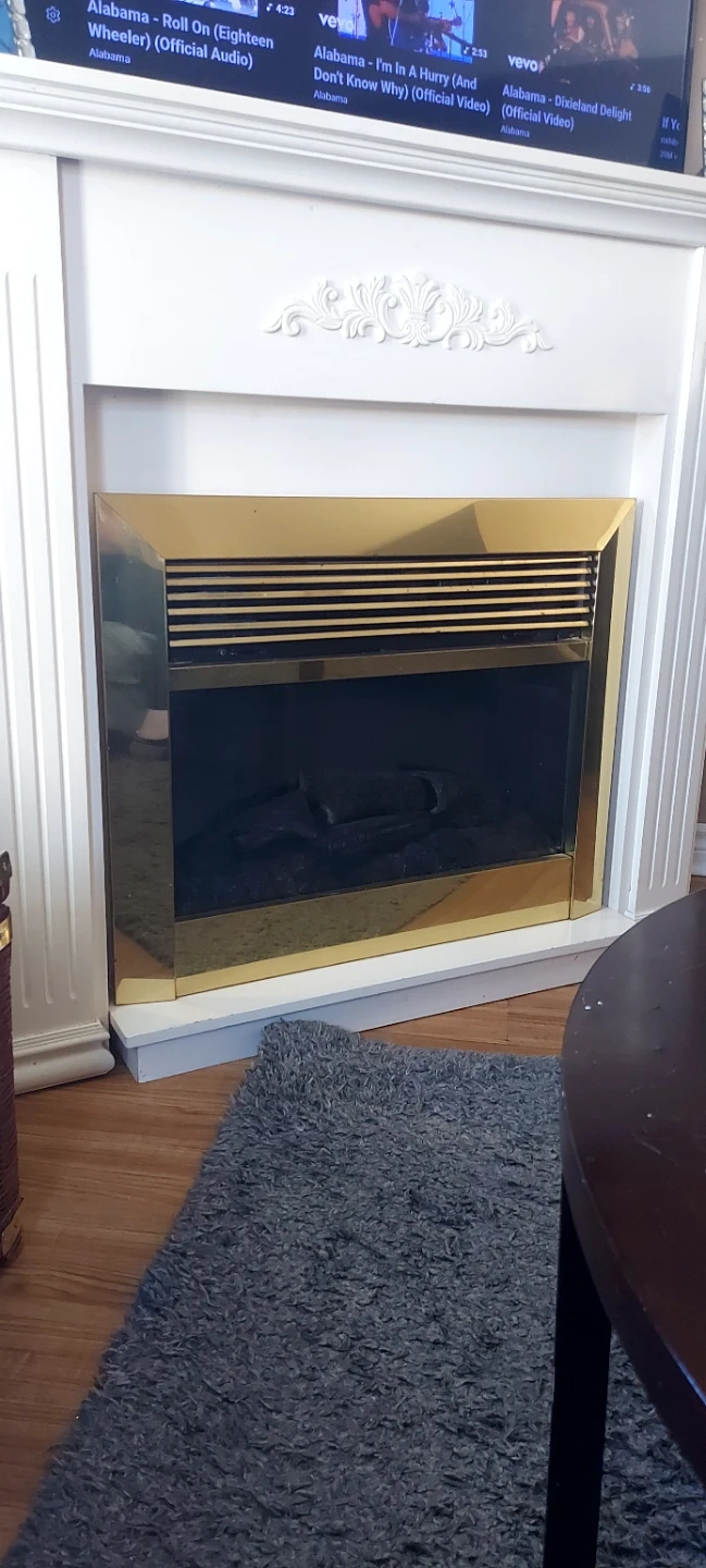 White Electric Fireplace with Gold Trim