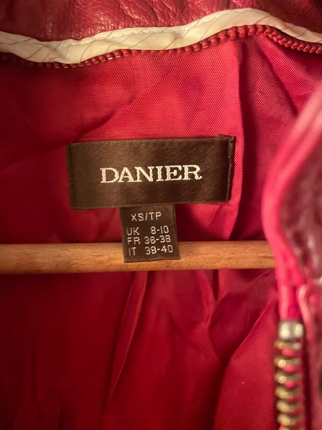 Selling a stylish Danier red leather jacket in size XS. It's in great condition and ready for a new home! Perfect for adding a pop of colour to your wardrobe. Somewhat crinkled from being in storage although that’s fixable with a clothes steamer or a low-heat iron with a damp cloth buffer. Otherwise in amazing condition.
