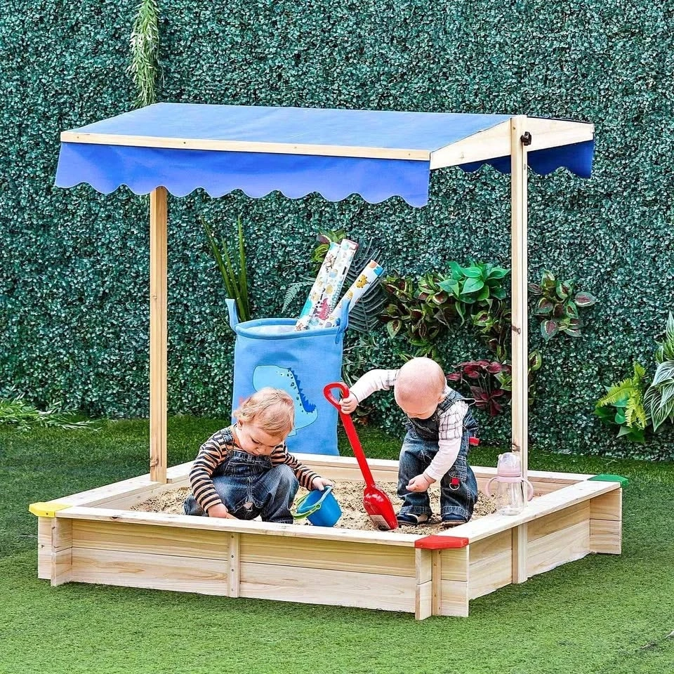 This sand box includes a canopy that can be adjusted to keep your sweetie shaded.