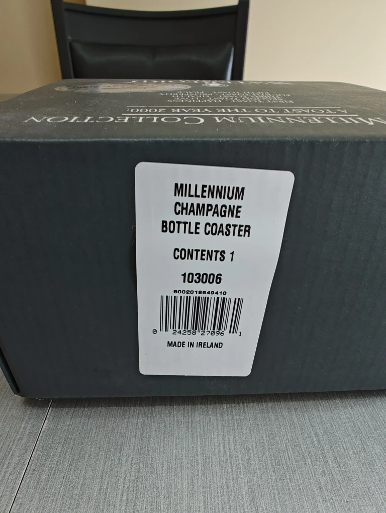 Selling a Waterford Crystal Millennium Collection champagne bottle coaster. It's part of "A Toast to the Year 2000" collection. The box includes the coaster itself. It's made in Ireland. New