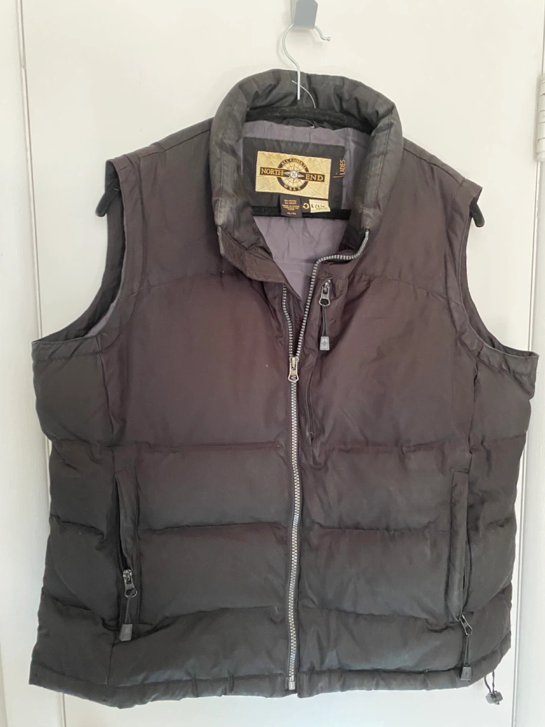 North End Ladies' All Climate Wear vest in size XL. It's made with a shell and lining of 100% polyester and filled with 70% down and 30% feathers. This vest is perfect for layering on chilly days!