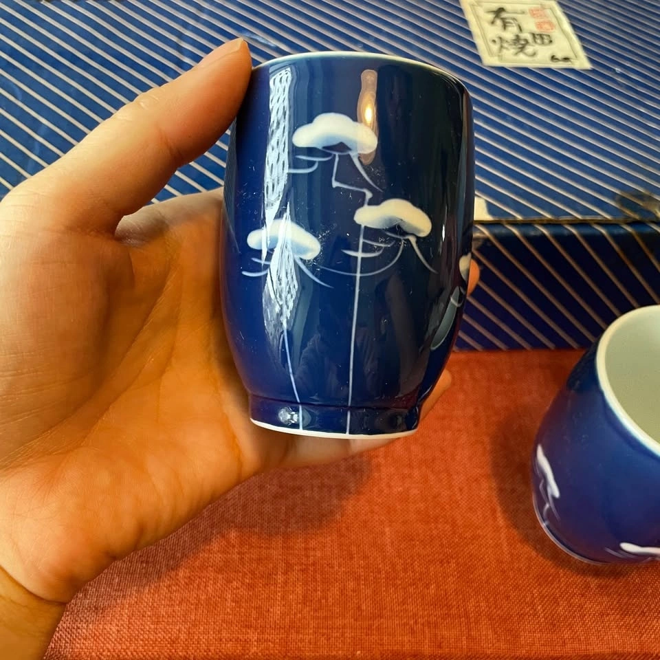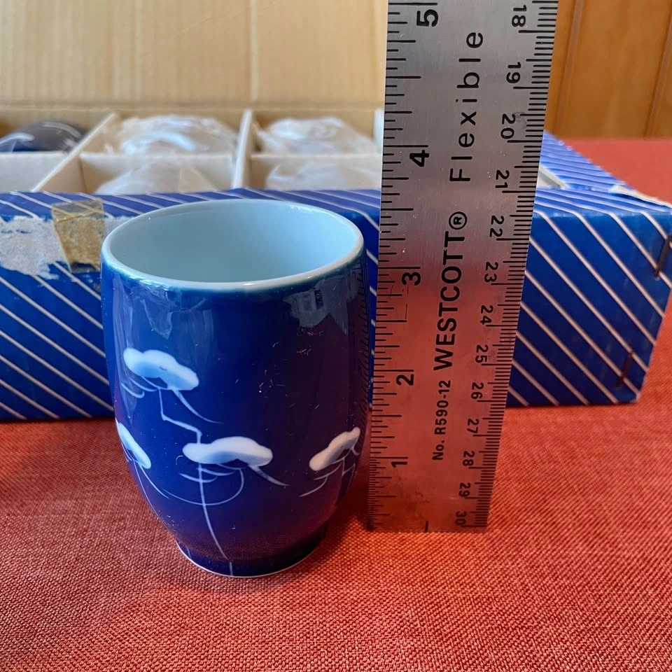 Enjoy your coffee, tea, or sake in authentic Japanese luxury with this pristine set of 10 Arita-yaki blue floral mugs!