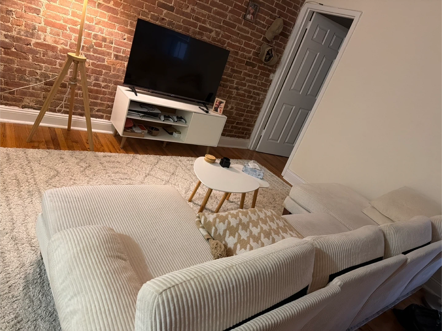 Selling a comfy off-white corduroy sectional sofa! It's in great shape and would be perfect for a living room or den. The corduroy material gives it a soft, cozy feel. It's a great piece to relax and unwind on after a long day
