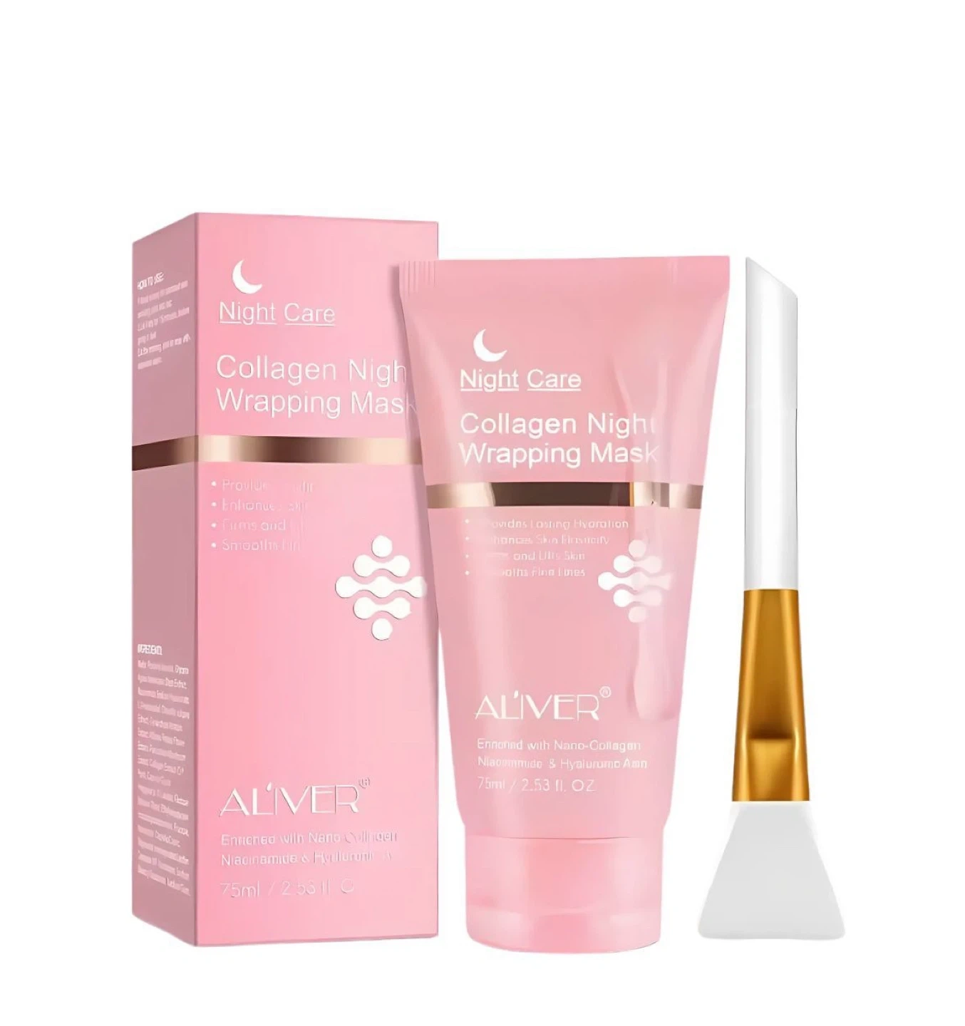I'm selling a brand new ALIVER Collagen Night Wrapping Mask! This mask provides lasting hydration, enhances skin elasticity, firms skin, and smooths fine lines. It's enriched with nano-collagen, niacinamide, and hyaluronic acid. Size is 75ml / 2.53 fl oz