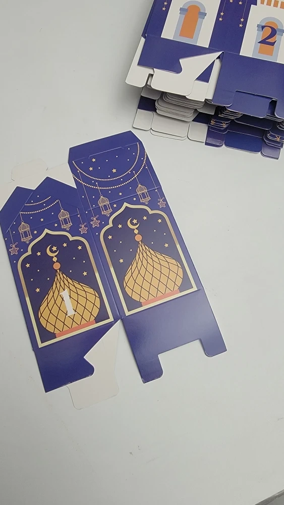 ✔️ All other boxes have proper crescent moons, lanterns, and Ramadan-themed artwork.