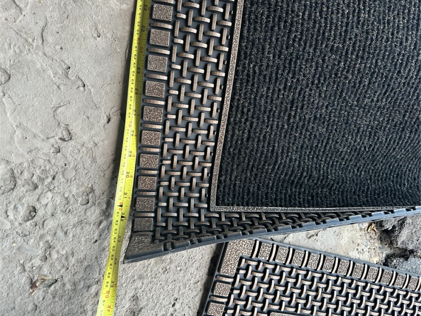 Selling a set of two black entrance mats. They're in great shape and ready to keep your floors clean! The mats measure approximately 24 inches by 36 inches.