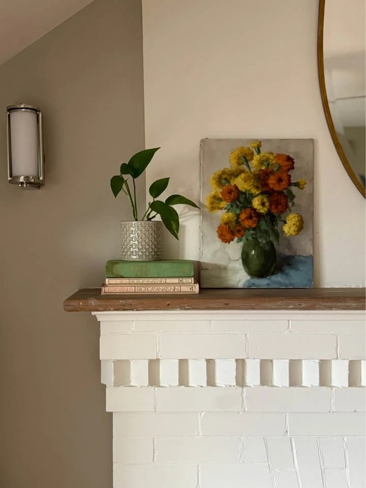 Vintage Floral Oil Painting: Marigold Still Life