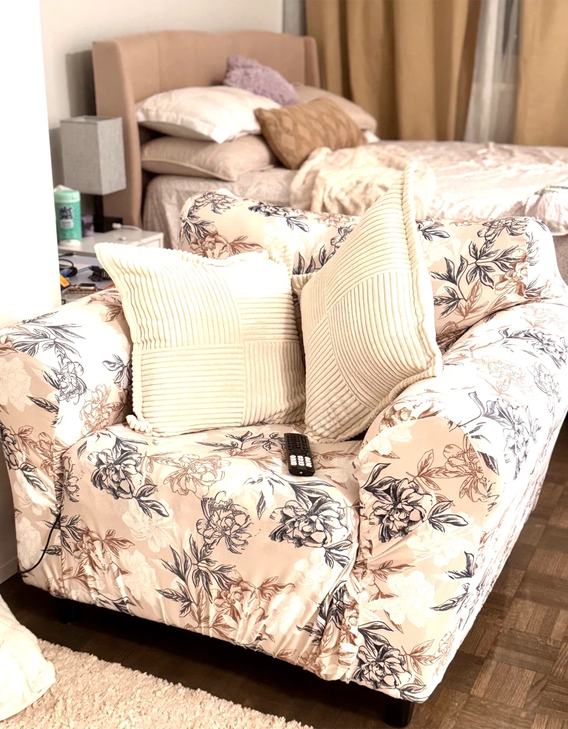Selling a comfy armchair with a floral pattern. It's in great condition and would be a lovely addition to any living room or bedroom. Perfect for curling up with a good book!