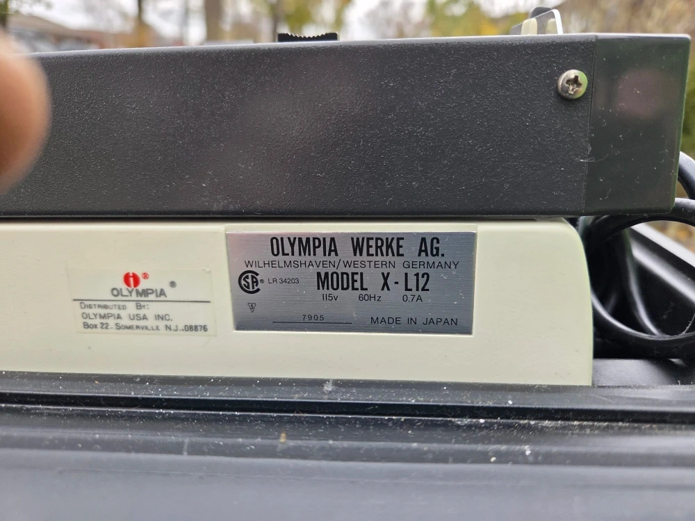 Selling an Olympia X-L12 typewriter! This vintage model comes with its original carrying case. It's a cool piece of history for collectors or anyone who appreciates classic typewriters. In perfect working condition and ready for a new home
