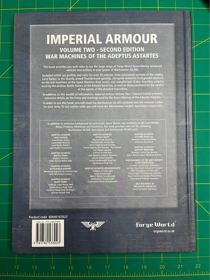 Imperial Armour Volume Two – Second Edition: War Machines of the Adeptus Astartes hardback from Forge World.