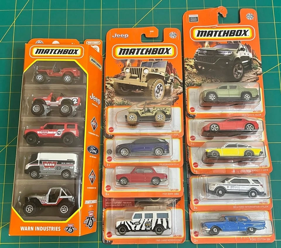 • Matchbox WARN Industries 75th Anniversary 5-Pack (Jeep & WARN-branded vehicles)