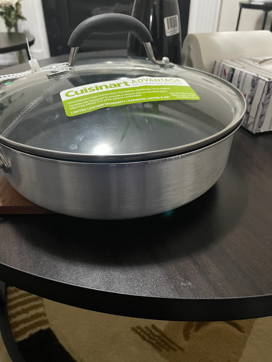 Selling a Cuisinart Advantage non-stick fry pan, complete with its lid! It's in great condition and ready for a new home. This pan is perfect for all your cooking needs!