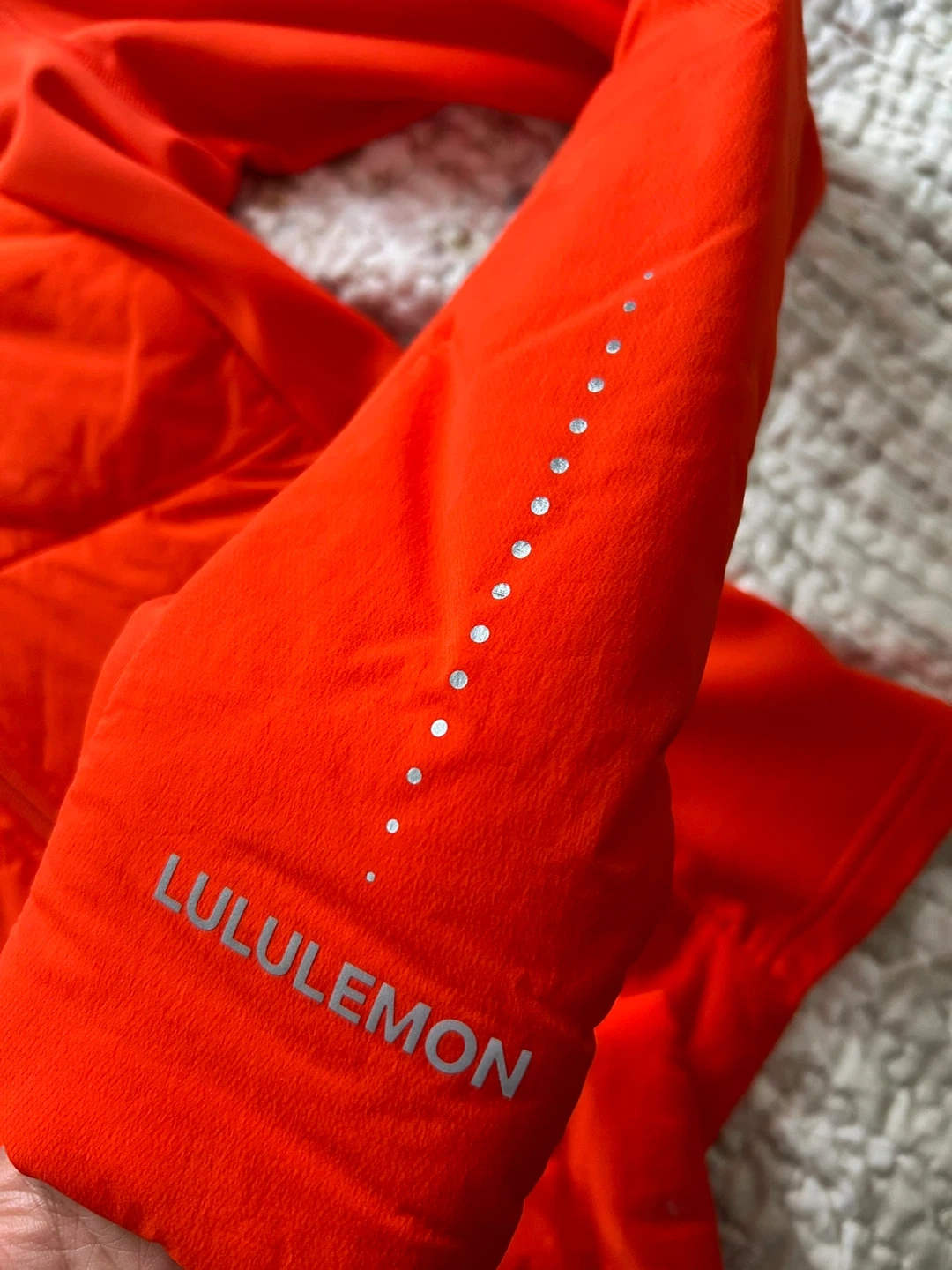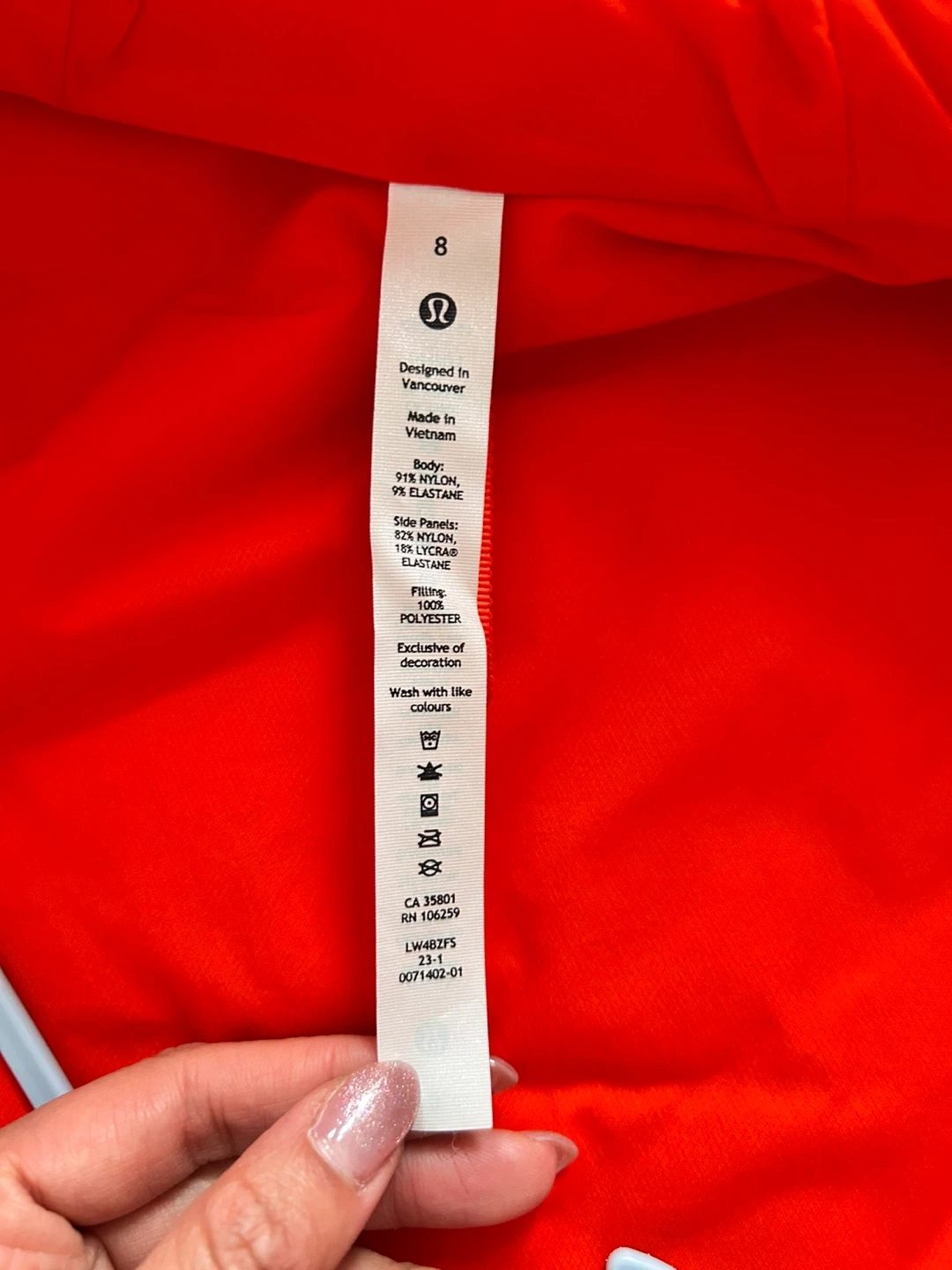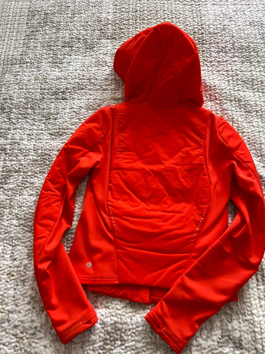 Selling a Lululemon jacket in a vibrant orange colour! It's a size 8 and in great condition.