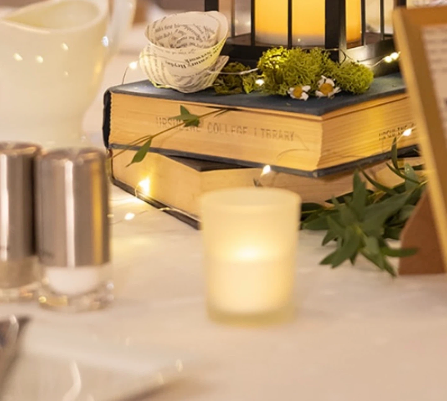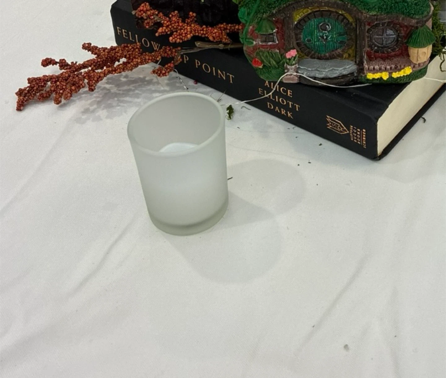 70 votives used for wedding centerpieces with electric tea lights included. Glass is frosted for a softer light.