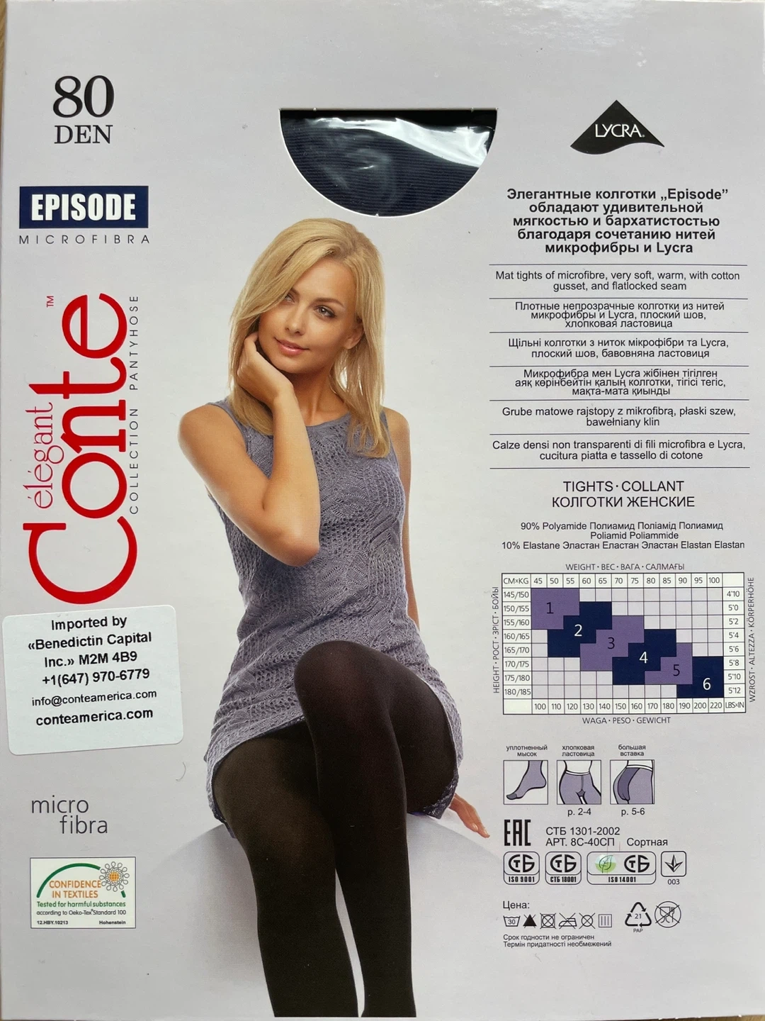 Conte Elegant Collection tights, made with microfibra for a soft and warm feel! These tights are 80 denier and feature a cotton gusset and flatlocked seam in a blue colour!