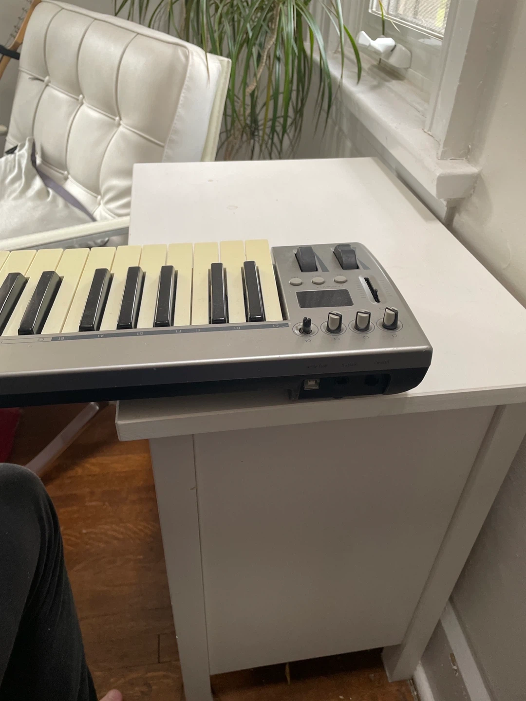 Selling a pre-owned M-Audio Keystation 49. It's a great MIDI keyboard for anyone looking to get into music production or needing a portable option for their setup. It has a sleek design and is easy to use!