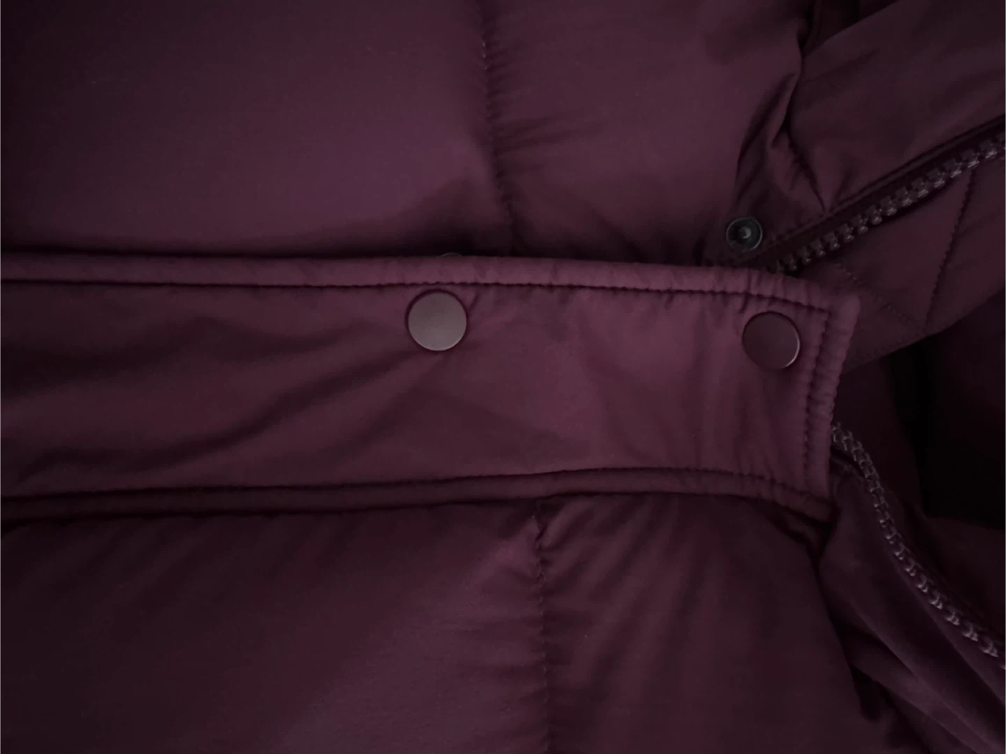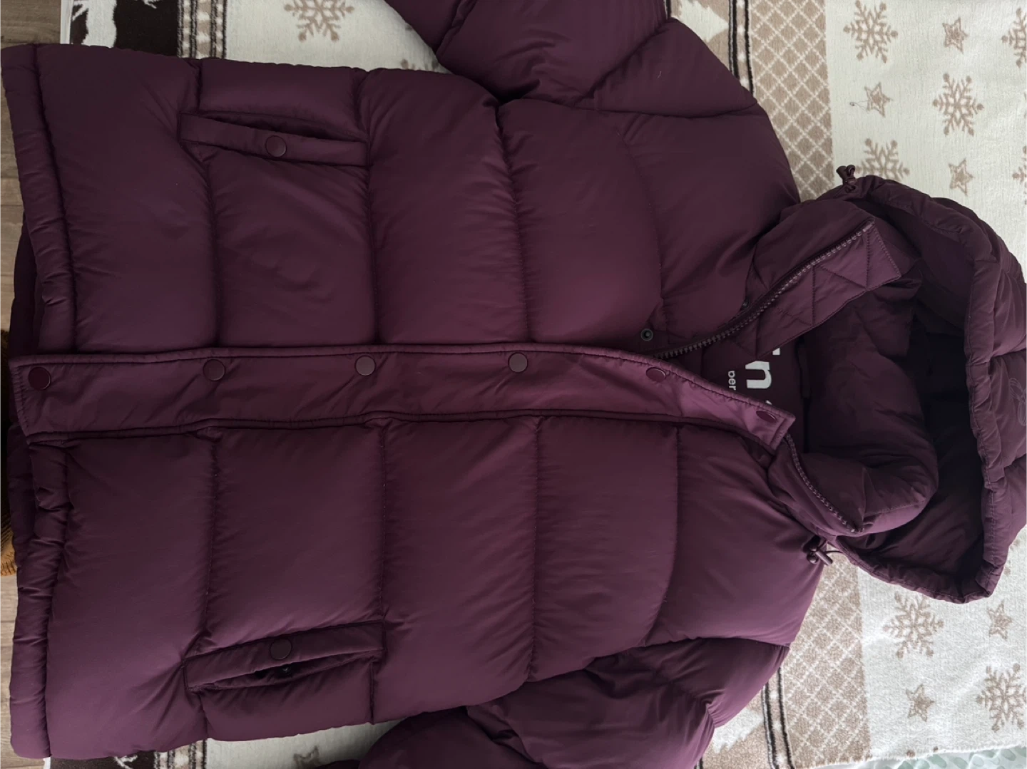 Selling a TNA The Super Puff™ Longy in the colour Plum. It's in great condition and perfect for the cold weather! It's designed to deliver warmth to -30°C / -22°F. The fabric is windproof and water-repellent. The snap in the right pocket is not functioning other than that the jacket is in great condition .
