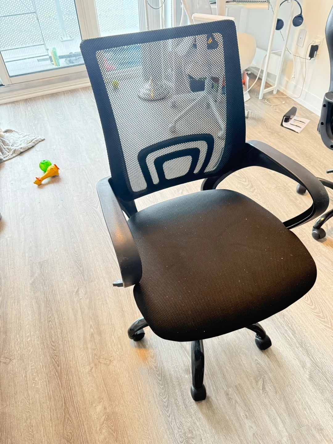 Selling a comfortable black mesh office chair. It's in great condition and ready for a new home office setup! The mesh back provides good support and breathability.