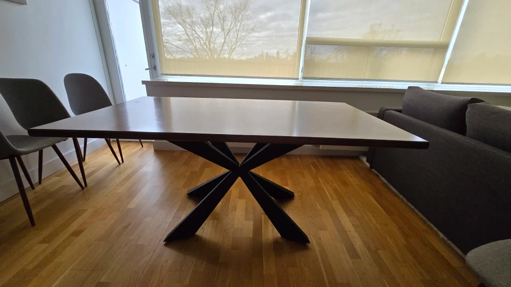 Selling a dining table that's in great shape! It measures 63 inches in length, 36 inches in width, and 30 inches in height