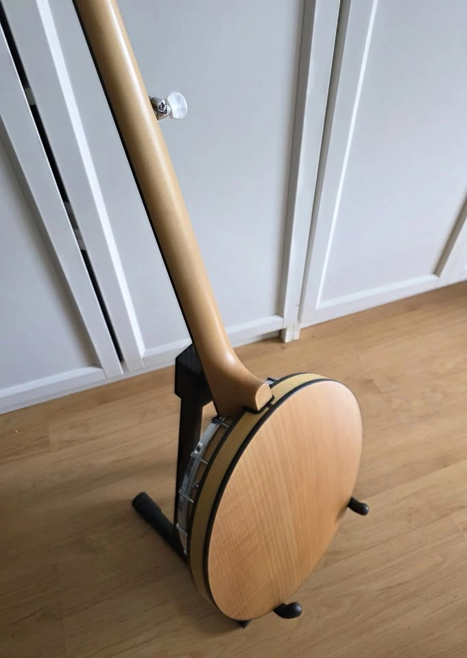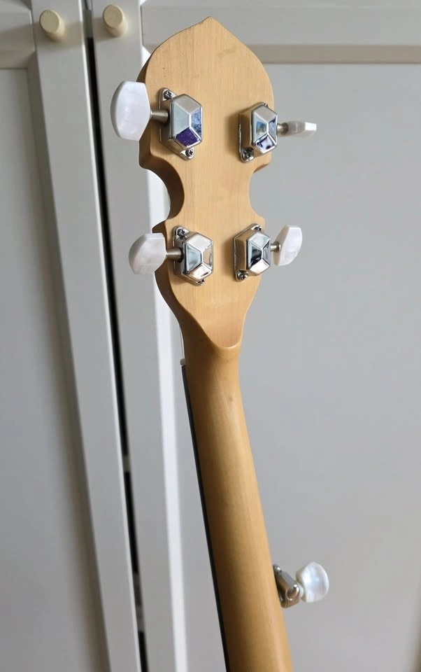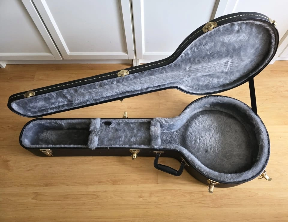 I'm selling this banjo because I really only play Irish Tenor banjo. It has been professionally set up, with new strings and a higher quality head. These upgrades have contributed to it's enhanced tone and volume. I'm including a very nice plush hard case.