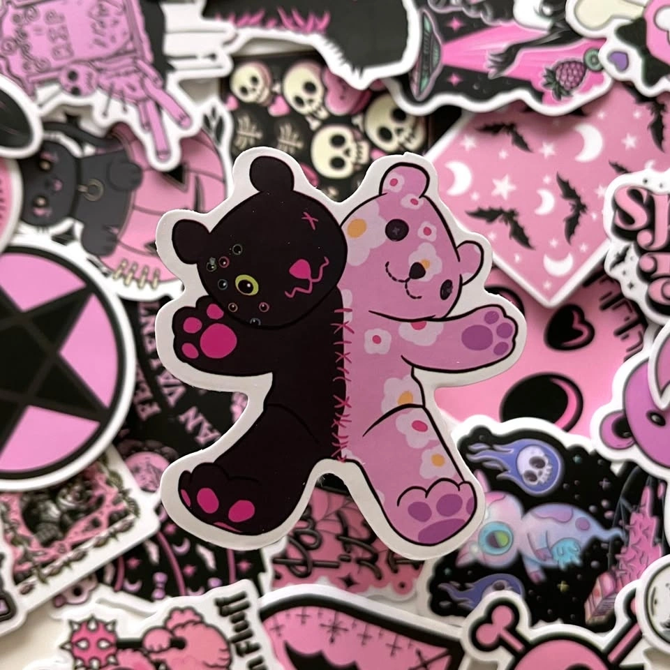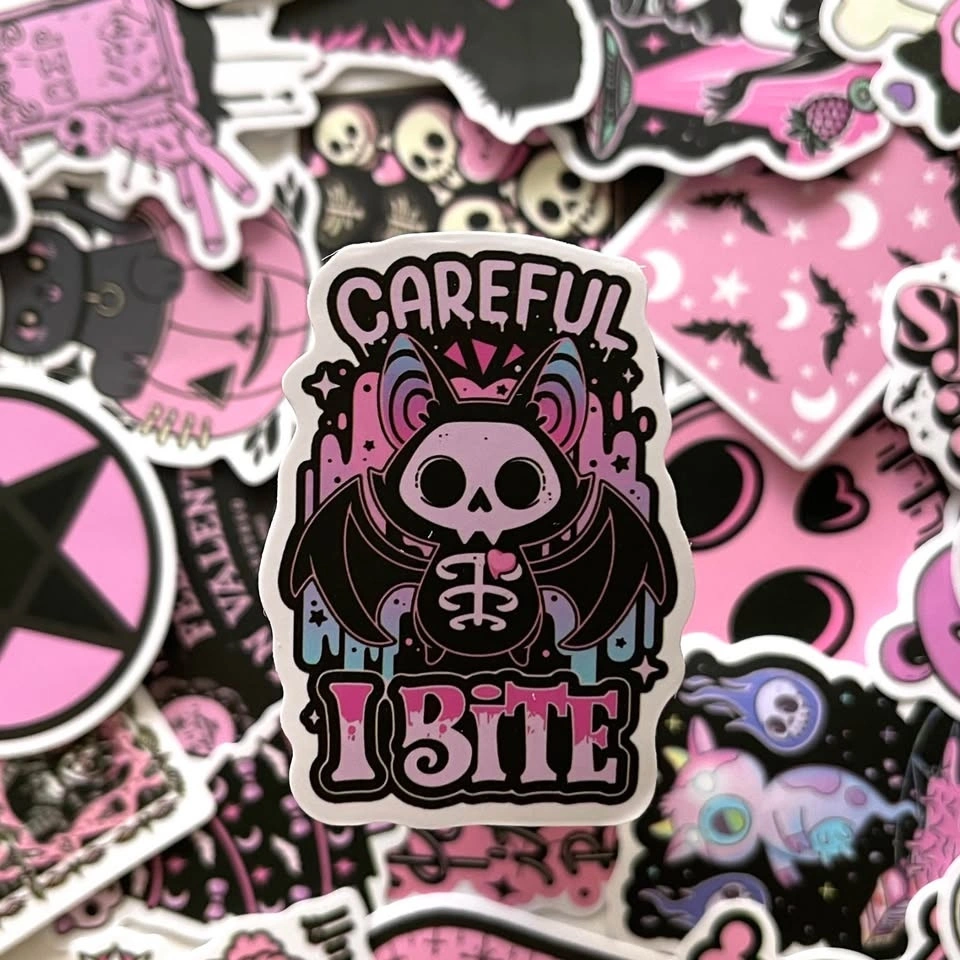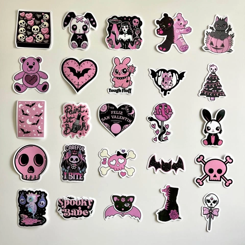 Pack of 50 Cute Black Pink Gothic Spooky Babe Stickers