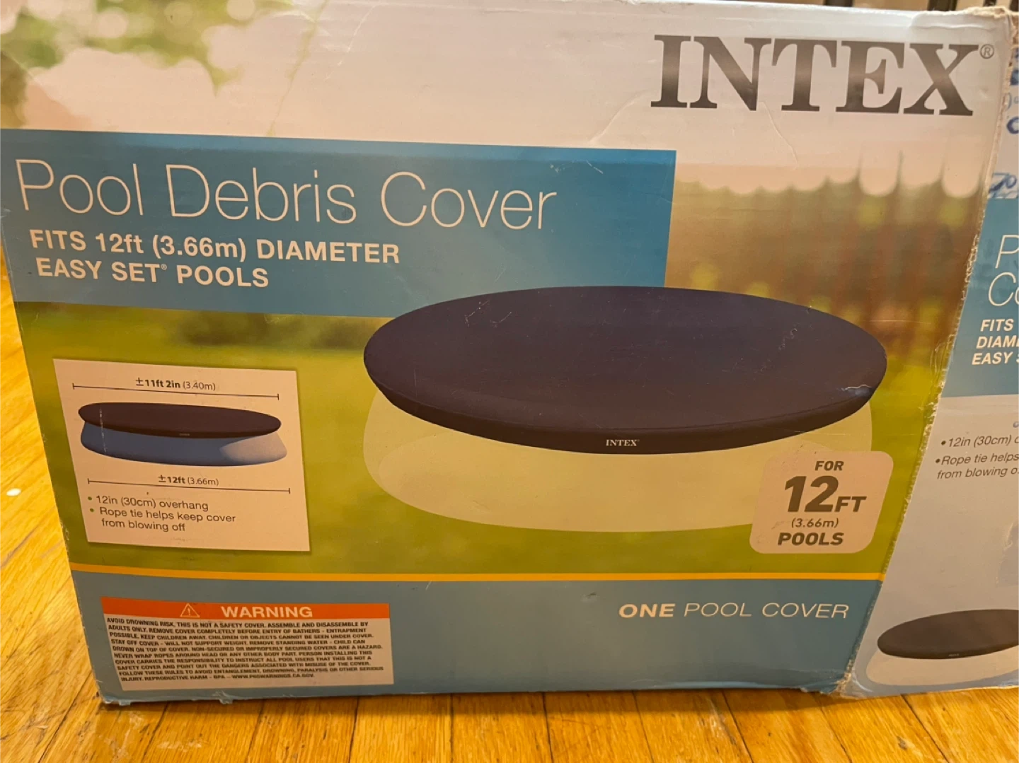 Selling an Intex Pool Debris Cover, designed to fit 12ft (3.66m) diameter Easy Set pools. It helps keep debris out and the rope tie helps keep the cover from blowing off. Includes the original box!