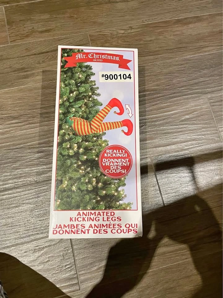 Battery powered elf legs make a kicking motion in your Christmas tree.