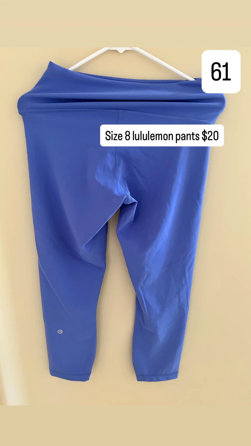 I have a Lululemon pants in size 8, a Lululemon top, and a Lululemon jacket in size 2 for sale