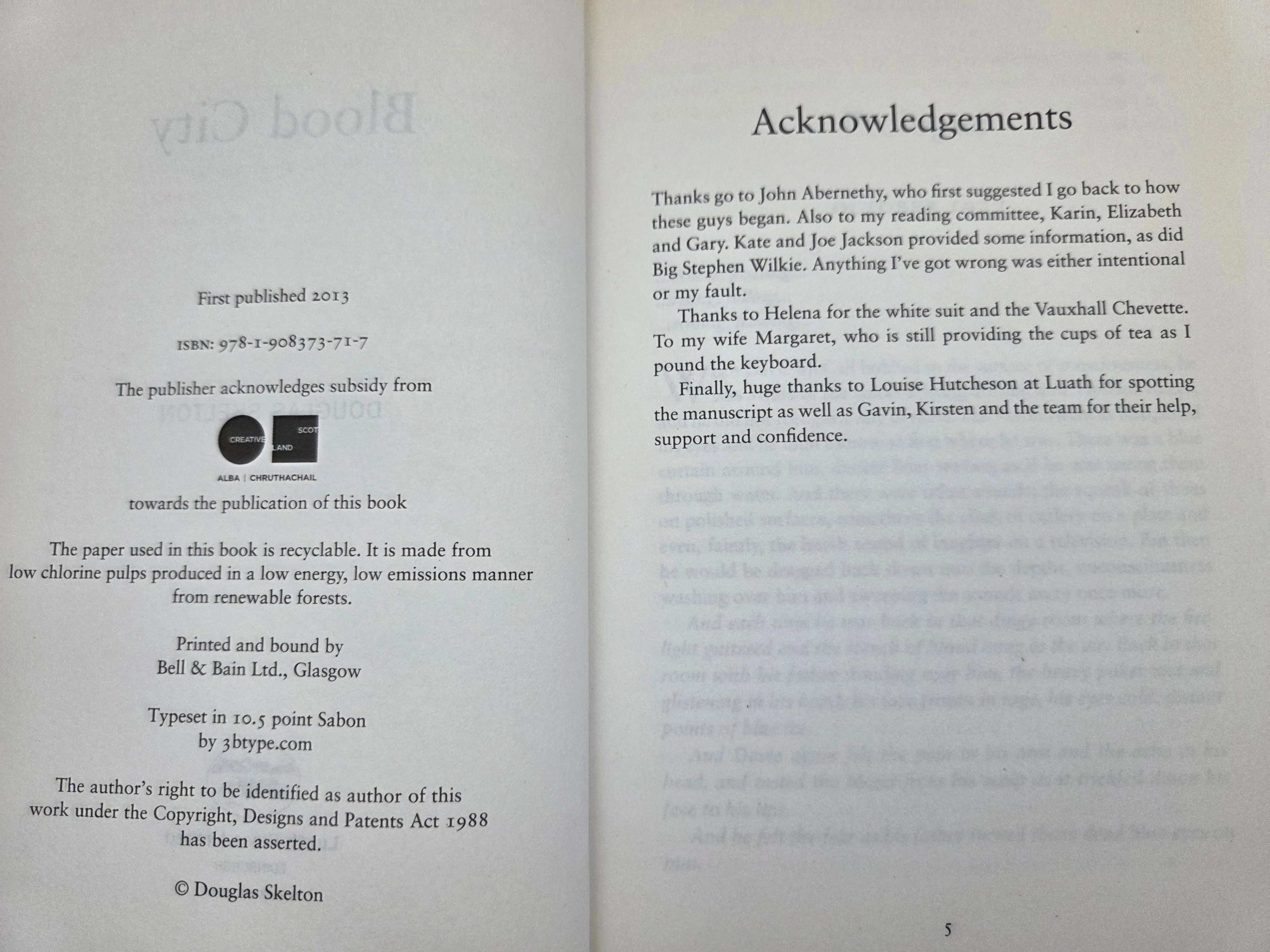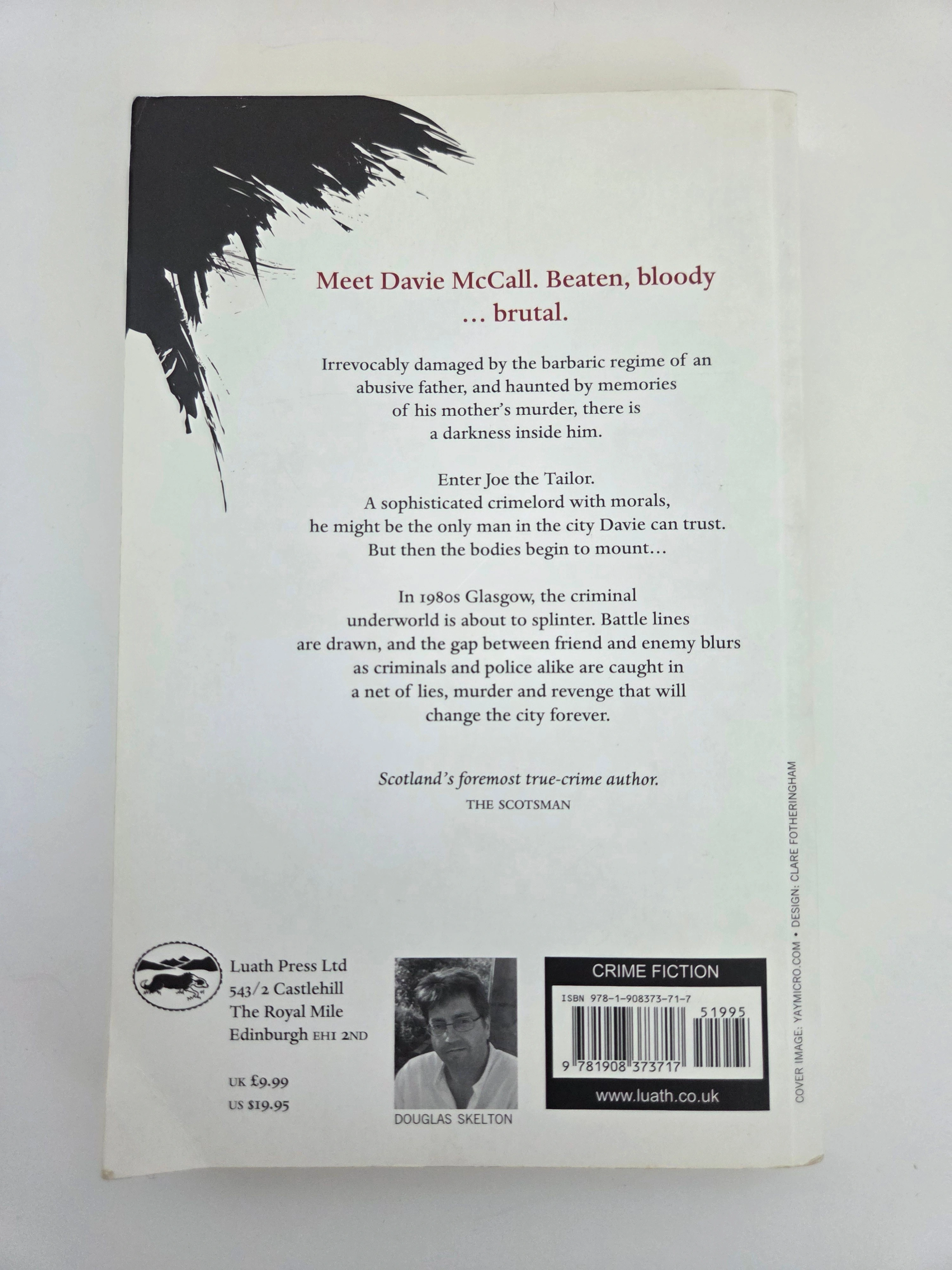 Pre-owned paperback of “Blood City” by Douglas Skelton – gritty Glasgow crime fiction introducing Davie McCall. First published 2013 by Luath Press. Back-cover summary: a brutal past and a city on the edge as alliances shift in 1980s Glasgow; Davie McCall faces Joe the Tailor and a rising body count. Perfect for fans of Scottish noir. Edition details: Luath Press; recyclable paper; printed and bound by Bell & Bain, Glasgow; cover design by Clare Fotheringham. Condition: gently used. Clean, tight pages; light shelf wear and faint surface scuffs on the white cover edges as shown in photos. Pickup near 24 Southport St, Toronto, M6S 4Z1. Can bundle with other books.