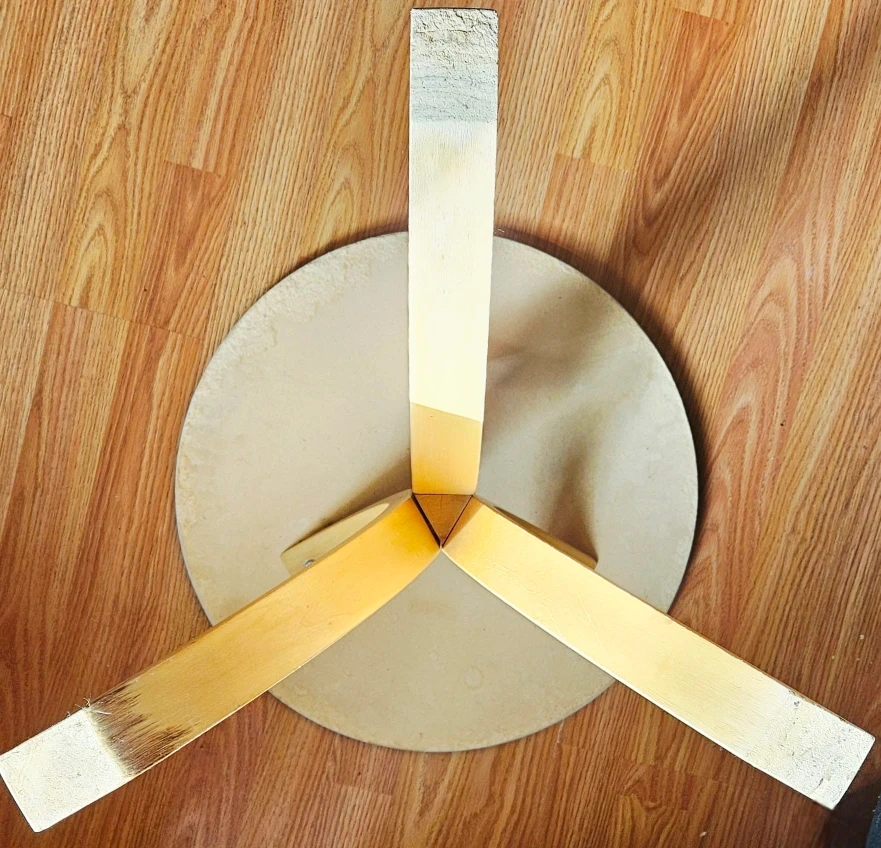 Selling a cute round accent table with a white top and wooden legs. It's perfect for adding a touch of style to any room. It has some signs of use, but it's still in great shape and ready for a new home!