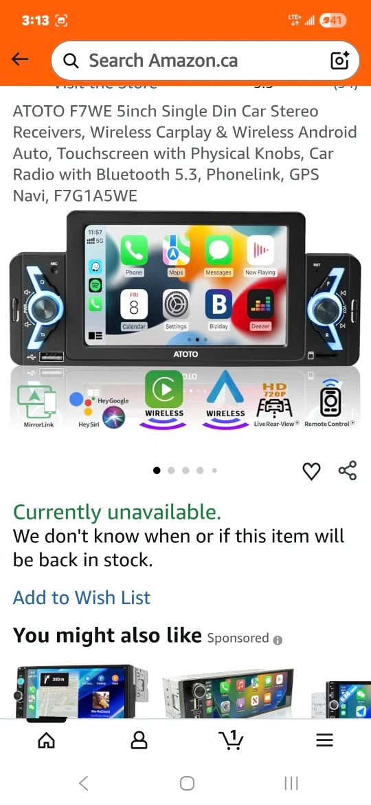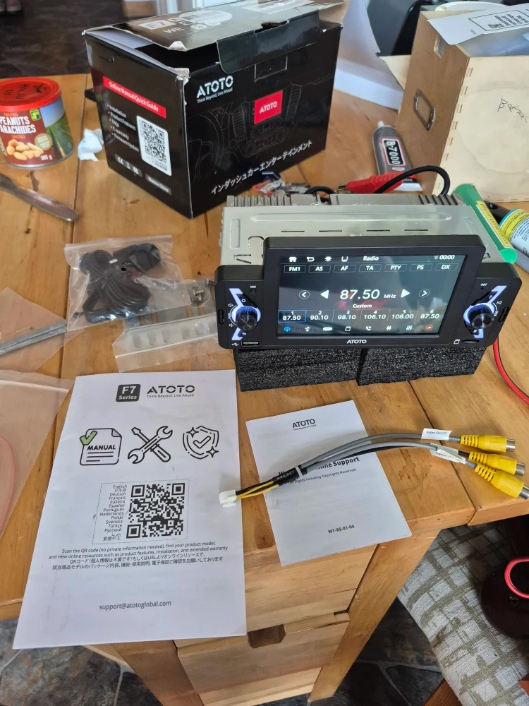Selling an ATOTO F7 WE 5-inch single din car stereo. It has wireless CarPlay and wireless Android Auto, a touchscreen with physical knobs, car radio with Bluetooth 5.3, phonelink, and GPS Navi. It comes with the box and manual! Please google for additional details.
