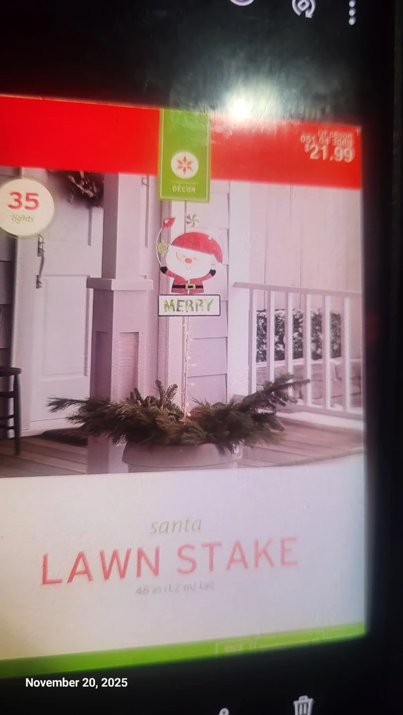 NEW Santa Lawn Stake, standing 48 inches (1.2 m) tall. It's designed for indoor or outdoor use and comes with a white wire. The original price was $21.99.
