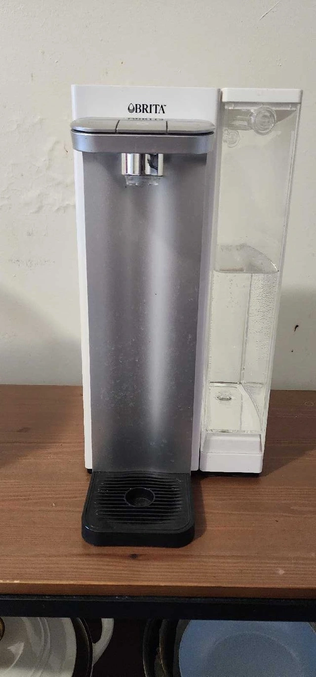 I'm selling a Brita Hub water filter that features instant, powerful countertop filtration for cleaner, great-tasting water on demand. This unit uses Brita's best water filtration technology, filtering 70+ contaminants including lead, chlorine, and benzene, while reducing microplastics, and it features a push-button dispensing system. This Brita Hub uses a filter that lasts about 6 months or filters about 120 gallons of water. Additional features include: