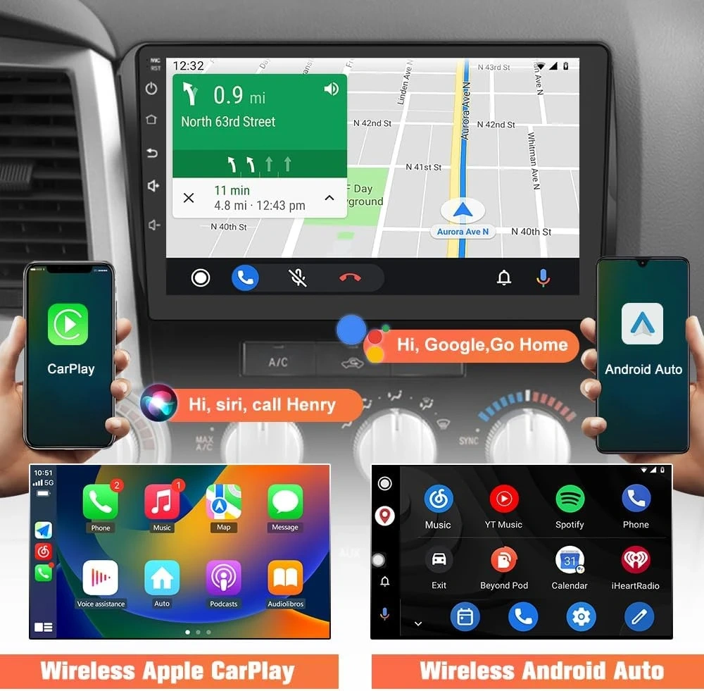 【Wireless CarPlay Android Auto】Get set for a seamless drive with our central display after paired bluetooth, integrated with CarPlay and Android Auto, providing intelligent navigation, easy controls, and a chic design to boost your on-the-road experience.