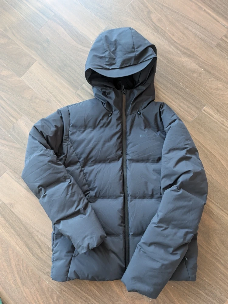 Selling a Patagonia down jacket in size small. It's in great condition and ready to keep you warm this winter! The jacket features a full zip and a hood for extra protection from the elements. Original first version of this jacket. Black logo on black looks slick
