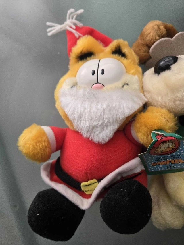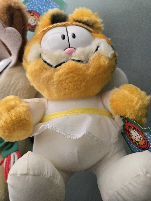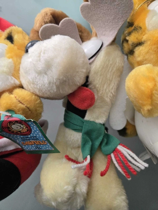These Garfield plush dolls from Applause are ready to bring some festive cheer! This trio includes Santa Garfield, Angel Garfield, and a reindeer dog. All are in good, used condition and come with their original tags.