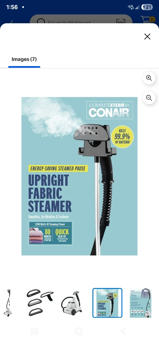 Selling a Conair upright fabric garment steamer! It heats up in 60 seconds. It also features an energy-saving steamed pause and kills 99.9% of bacteria. It smooths, de-wrinkles, and freshens. This steamer has 1200 watts of steaming power and quick heat up. ONLY USE 1 TIME