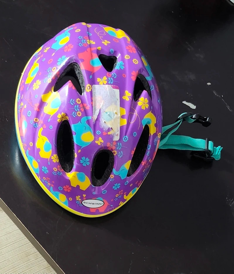 Selling a Schwinn Lil' Stardust kids' helmet in great condition! It features a fun, colourful design with flowers and elephants on a purple background. Perfect for keeping your little one safe while they bike or scooter