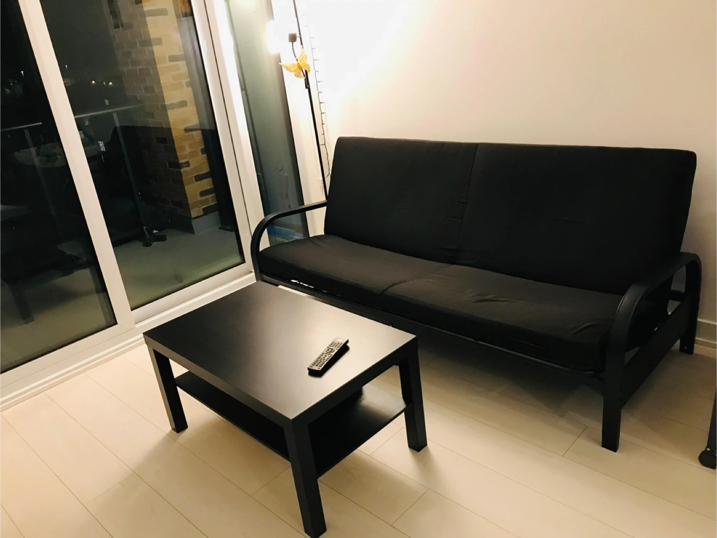 Selling a black futon that easily converts into a bed. It's in great condition and perfect for small spaces or guest rooms. The back reclines for customized comfort!