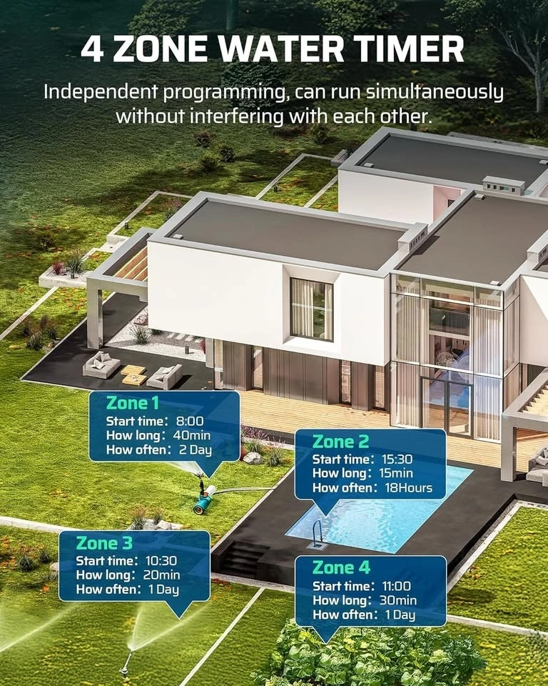 Rain Delay + Manual Mode: Skip watering on rainy days to save water. Manual mode allows quick watering without affecting your programmed schedule.