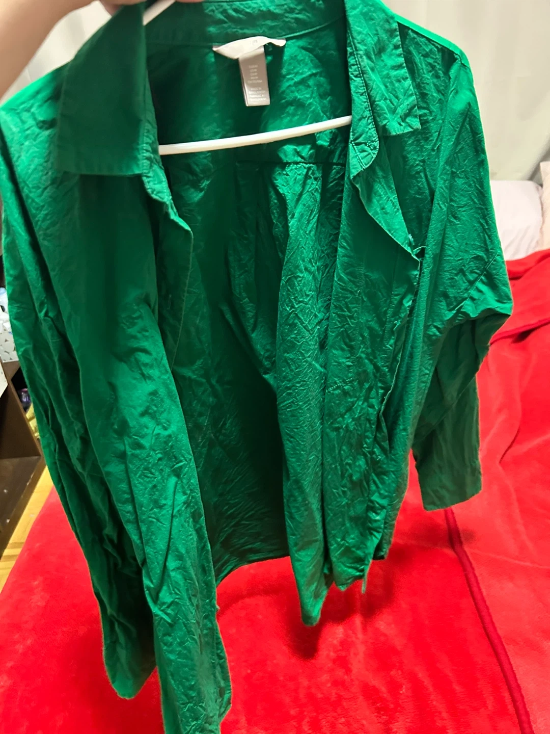 Selling a gently used H&M blouse in a vibrant green colour! It's a size medium and in great condition. This blouse is perfect for adding a pop of colour to your wardrobe. Feel free to ask any questions!