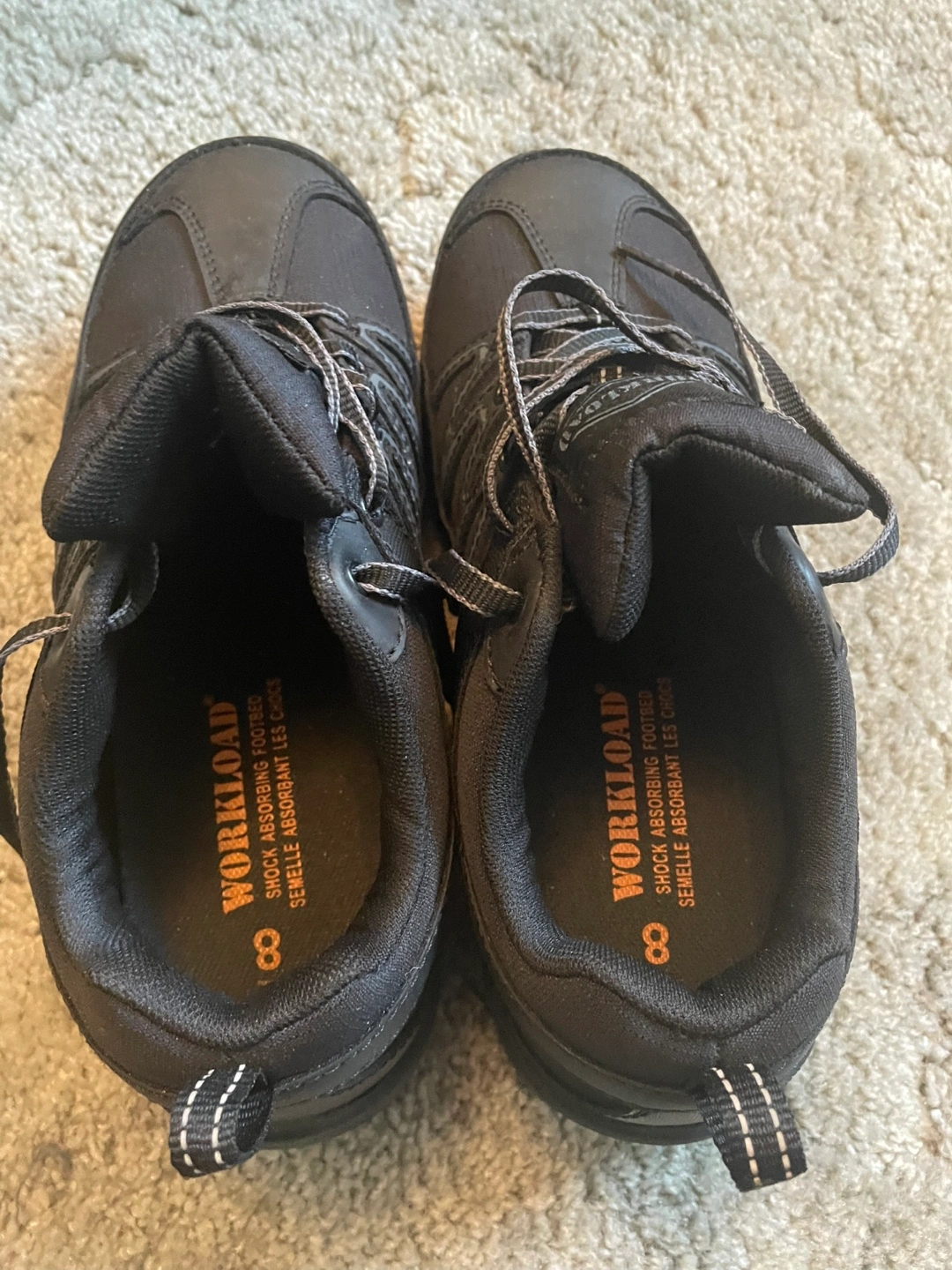 Selling a pair of men’s Workload safety shoes in black, size 8. They never been used These shoes are shock absorbing and oil resistant, perfect for on-the-job safety and comfort can wear them in all weather conditions only take cash please no e-transfers thank you
