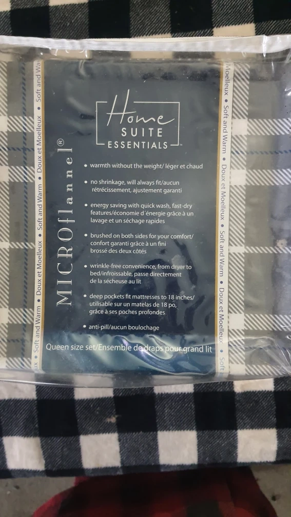 Selling a brand new Home Suite Essentials Microflannel sheet set in Queen size. It's still in the original packaging.