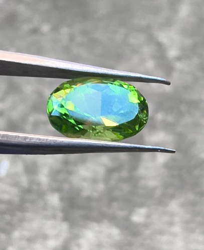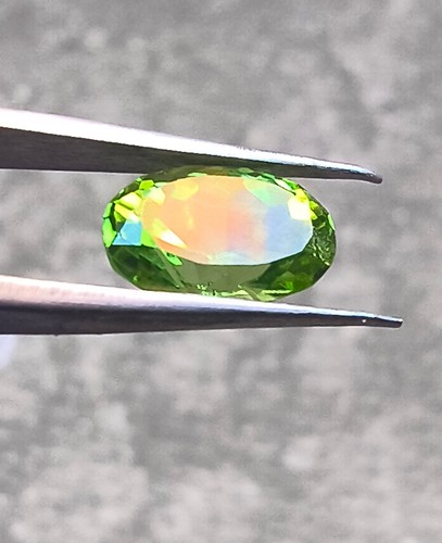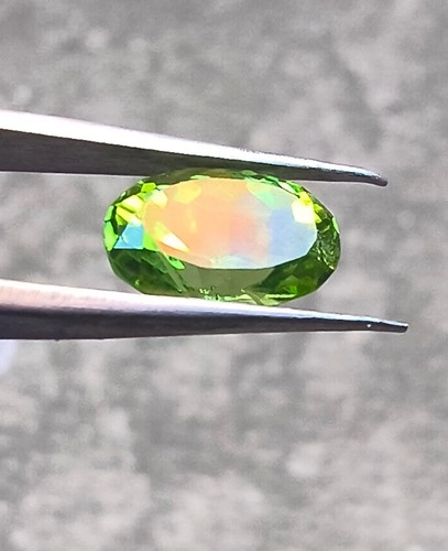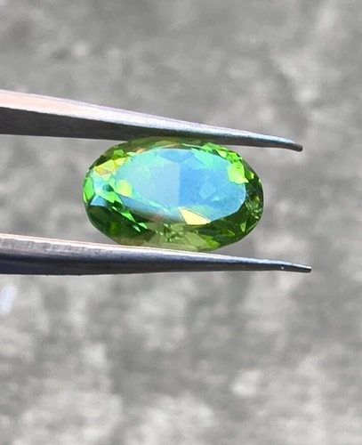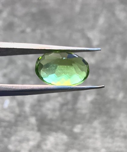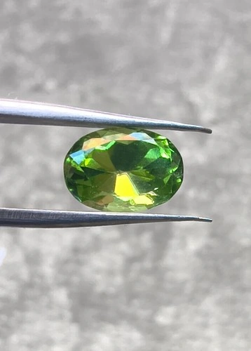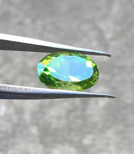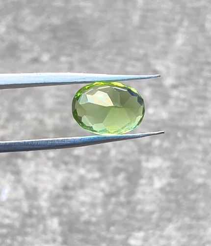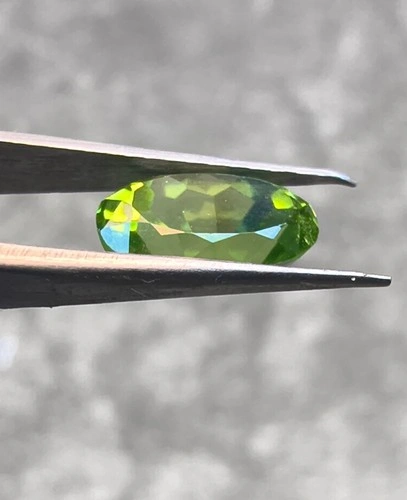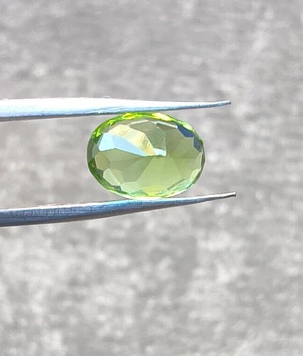 Crafted to captivate, this 1.8-carat faceted peridot boasts a beautiful green color that's sure to turn heads. With an oval shape that's been cut to perfection, it's a singular piece that radiates elegance. Measuring 6mm in length and 4mm in width, this gemstone is eye clean and transparent, with a clarity grade that speaks to its fine quality.