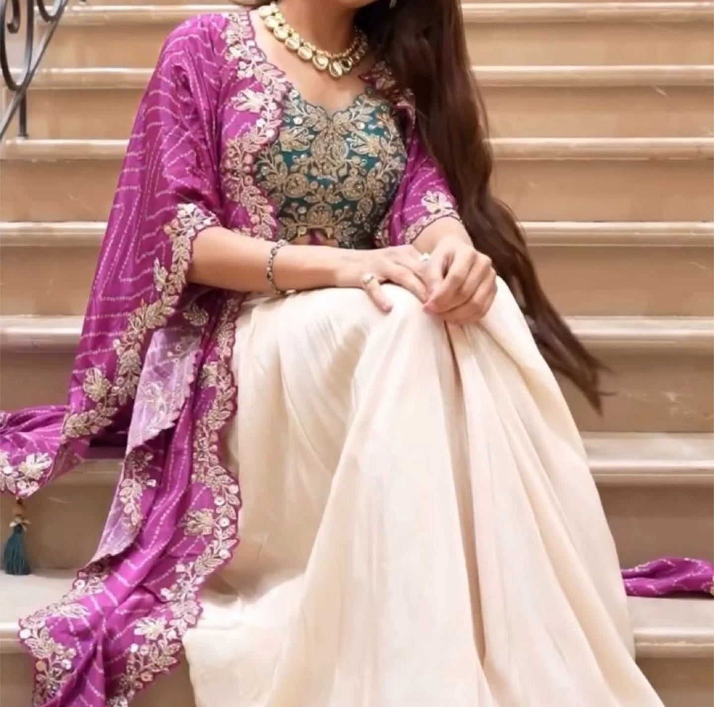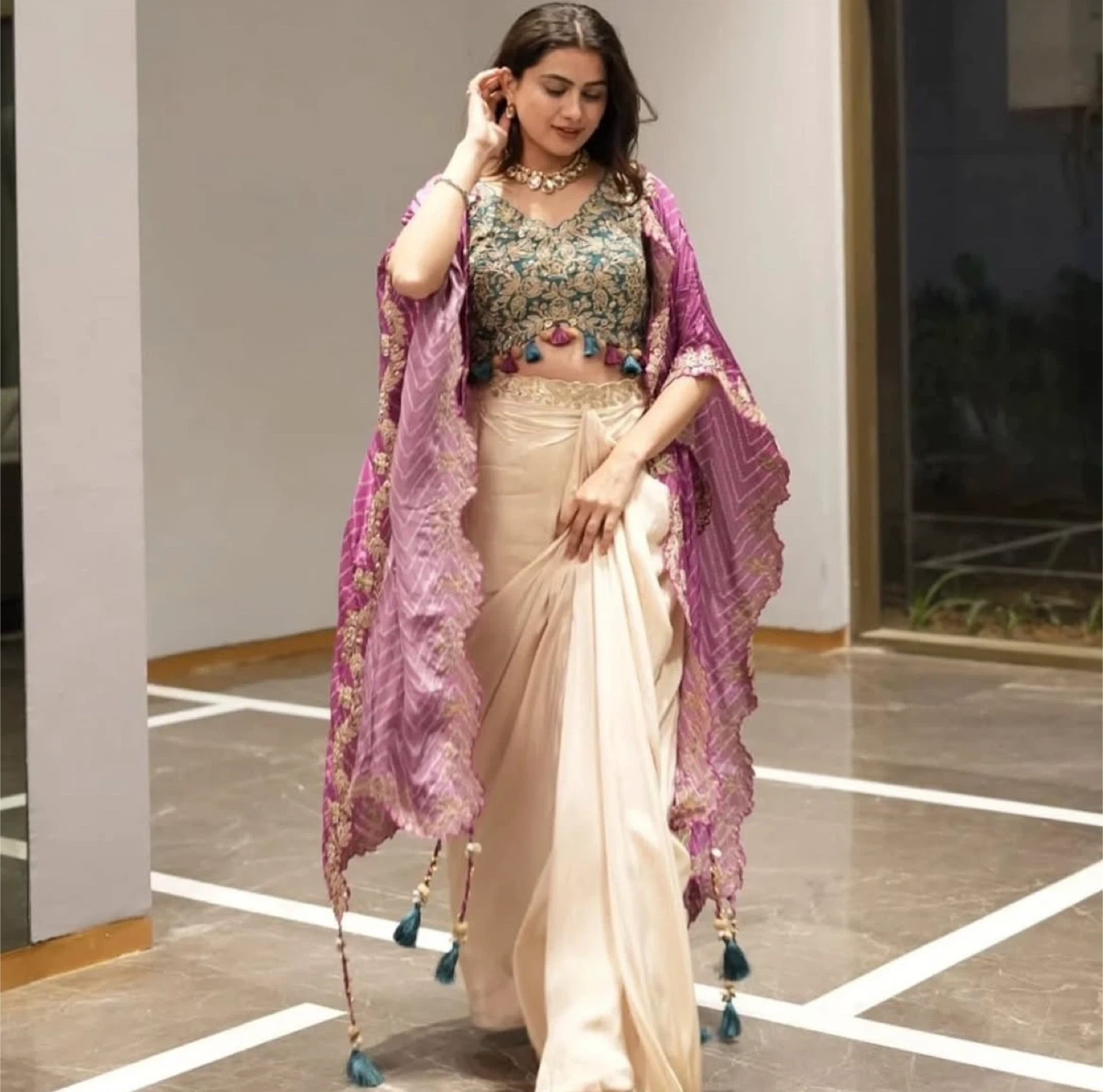 #FABRIC:. CRAPE SILK WITH SEQUENCE EMBROIDERY BELT (FREE SIZE) HEIGHT : 42"inch