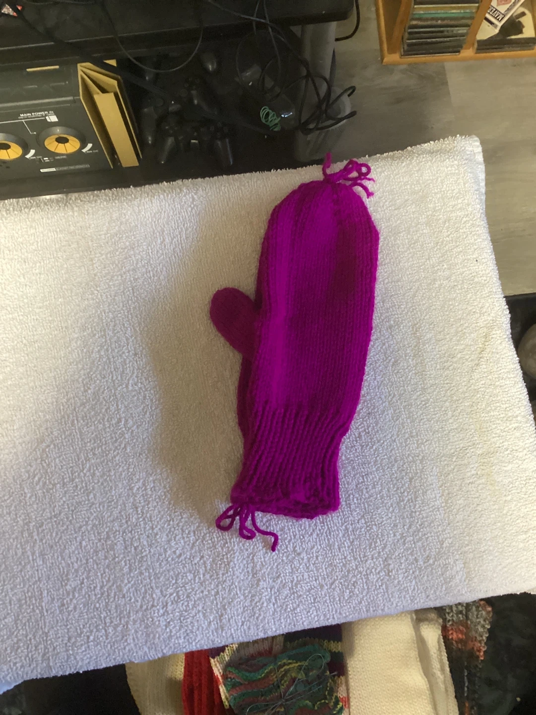 Selling a handmade knitted set in a vibrant magenta colour! The set includes a headband, a scarf, and a pair of mittens. Perfect for staying warm and stylish during the colder months